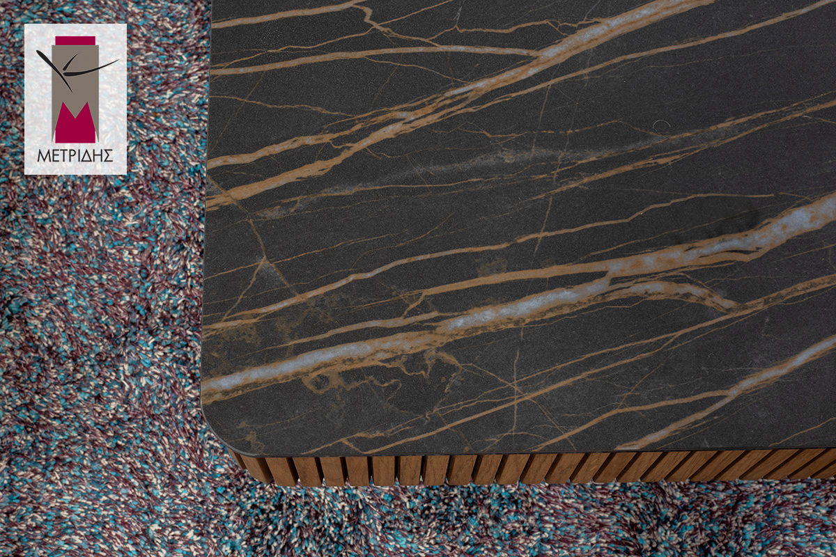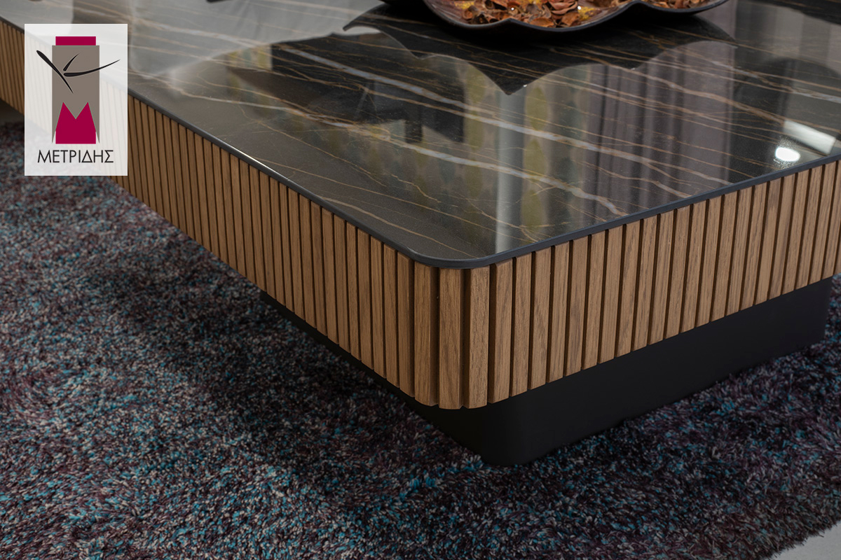 Οι τεχνοτροπίες με πηχάκια στο περίγραμμα προσδίδουν έναν αέρα κομψότητας και διαχρονικής κλασικότητας. Κάθε λεπτομέρεια αναδεικνύει το χειροποίητο χαρακτήρα του τραπεζιού, δημιουργώντας ένα αντικείμενο που ξεχωρίζει στον χώρο του σαλονιού.
