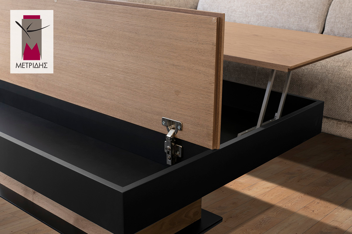 Ο μηχανισμός "σερβιρίσματος" προσφέρει τη δυνατότητα να μετατρέψετε αυτό το τραπεζάκι από μια κανονική επιφάνεια στον ιδανικό χώρο για το σερβίρισμα φαγητού, ποτών ή ακόμα και για την εργασία σας. Ο ενσωματωμένος μηχανισμός δίνει ένα έξτρα επίπεδο λειτουργικότητας και άνεσης στον χώρο σας.