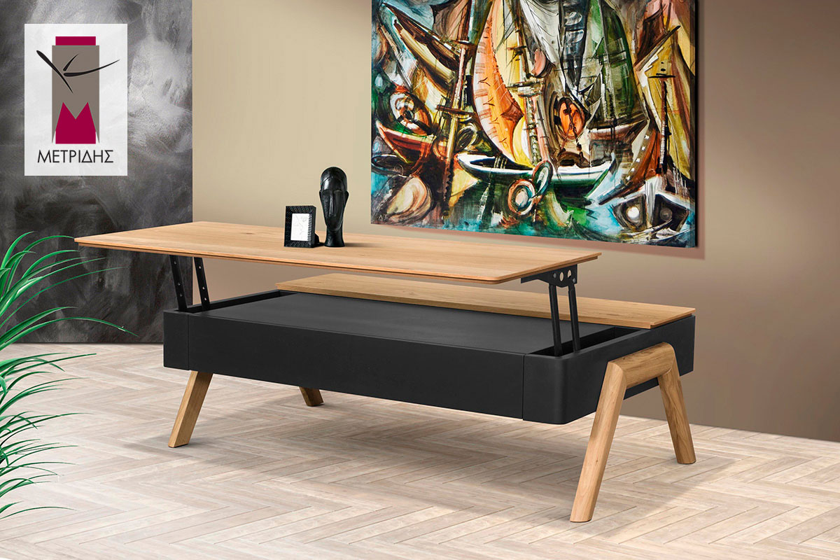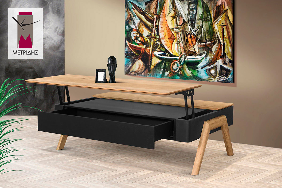 Το πρωτοποριακό χαρακτηριστικό αυτού του τραπεζιού σαλονιού είναι ο υδραυλικός μηχανισμός "σερβιρίσματος". Αυτή η ενσωματωμένη λειτουργία διευκολύνει την καθημερινή χρήση του τραπεζιού, καθιστώντας το ιδανικό για γεύματα, επιτραπέζια παιχνίδια, ή ακόμη και ως χώρος εργασίας. Με ένα απλό χειρισμό, μπορείτε να ρυθμίσετε το ύψος του τραπεζιού στο επιθυμητό επίπεδο, προσφέροντας απόλυτη ευελιξία.