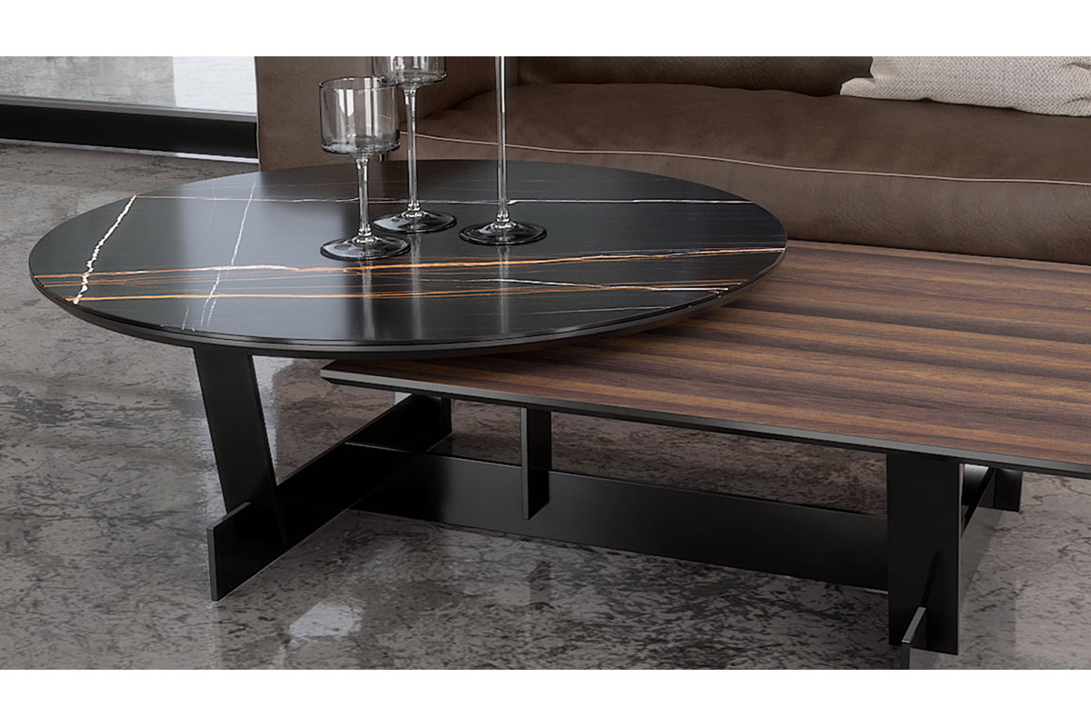 Ο παραλληλόγραμμος σχεδιασμός του τραπεζιού δημιουργεί μια σταθερή και αξιόπιστη βάση που είναι ιδανική για να υποστηρίξει το στρογγυλό καπάκι. Το στρογγυλό καπάκι περιστρέφεται, προσφέροντας μια ευρύτερη επιφάνεια για την εξυπηρέτηση και την τοποθέτηση αντικειμένων, είτε αυτά είναι ποτά και εδέσματα για τους καλεσμένους σας, είτε αντικείμενα διακόσμησης που επιθυμείτε να βρίσκονται σε κορυφή του.