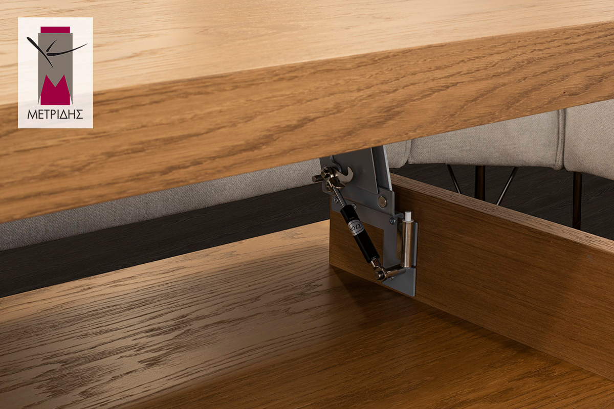 Ο αυτόνομος μηχανισμός "σερβιρίσματος" αποτελεί το κεντρικό χαρακτηριστικό αυτού του τραπεζιού σαλονιού. Αυτός ο μηχανισμός επιτρέπει την εύκολη μετατροπή του τραπεζιού από μια κανονική και κομψή επιφάνεια σε έναν πρακτικό χώρο σερβιρίσματος. Μπορείτε να το χρησιμοποιήσετε για να σερβίρετε γεύματα, ποτά, ακόμη και για να διευκολύνετε την εργασία σας από τον καναπέ σας. Αυτή η πρακτική λειτουργία προσθέτει άνεση και ευκολία στην καθημερινή σας ζωή.