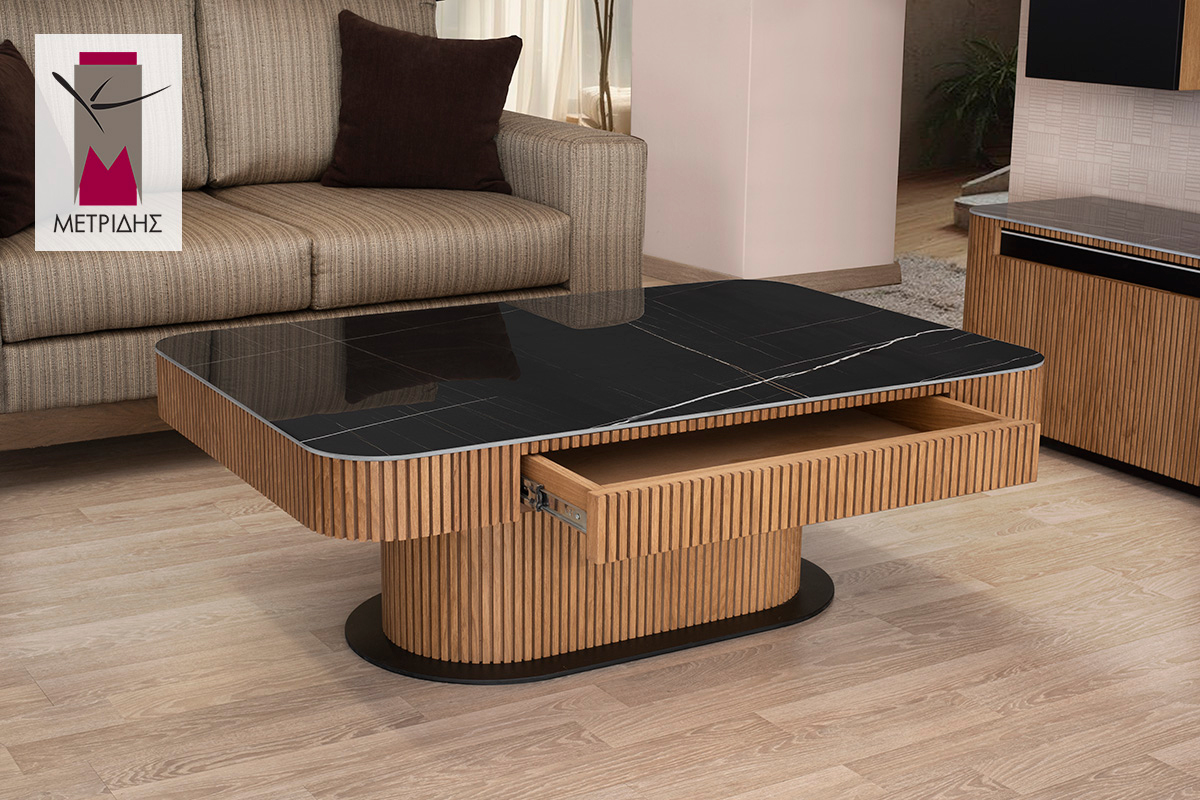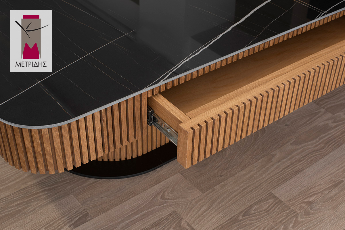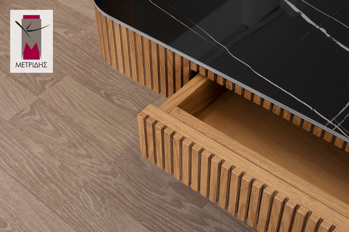 Διακριτικό αλλά ευρύχωρο συρτάρι που προσφέρει πρακτικές λύσεις για την αποθήκευση αντικειμένων του καθιστικού.