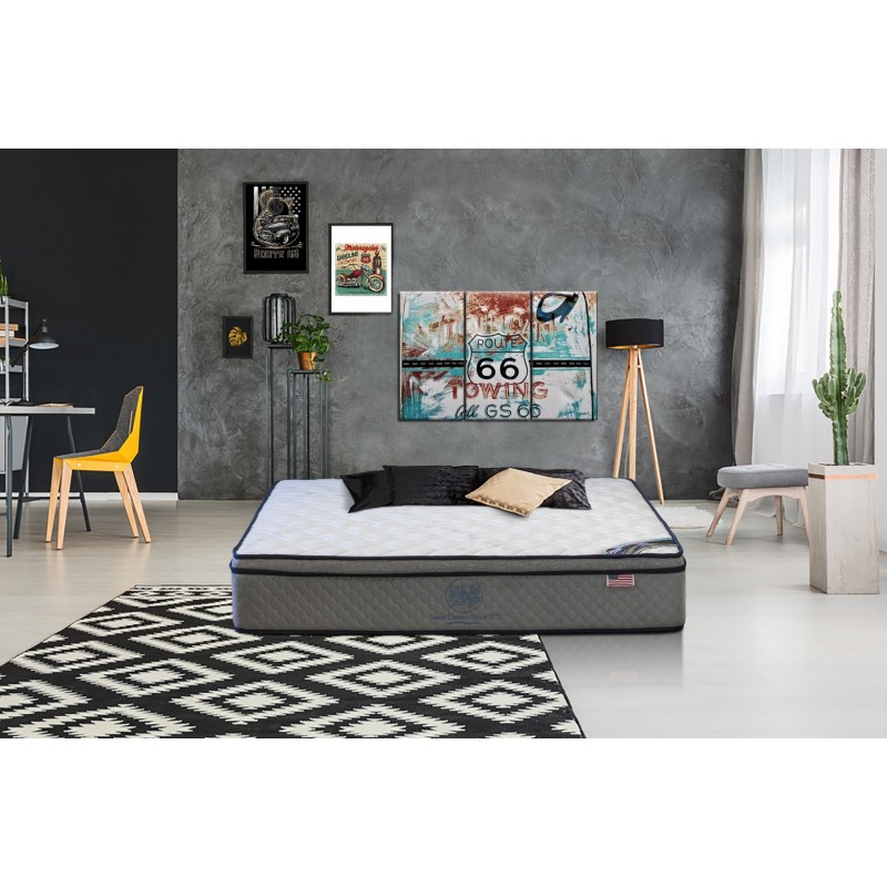 • Εσωτερικά ενισχυμένο σύστημα πενταζωνικών ανεξάρτητων ελατηρίων, High Density Pocket Springs και περιμετρικές κολώνες αφρού για καλύτερη στήριξη.